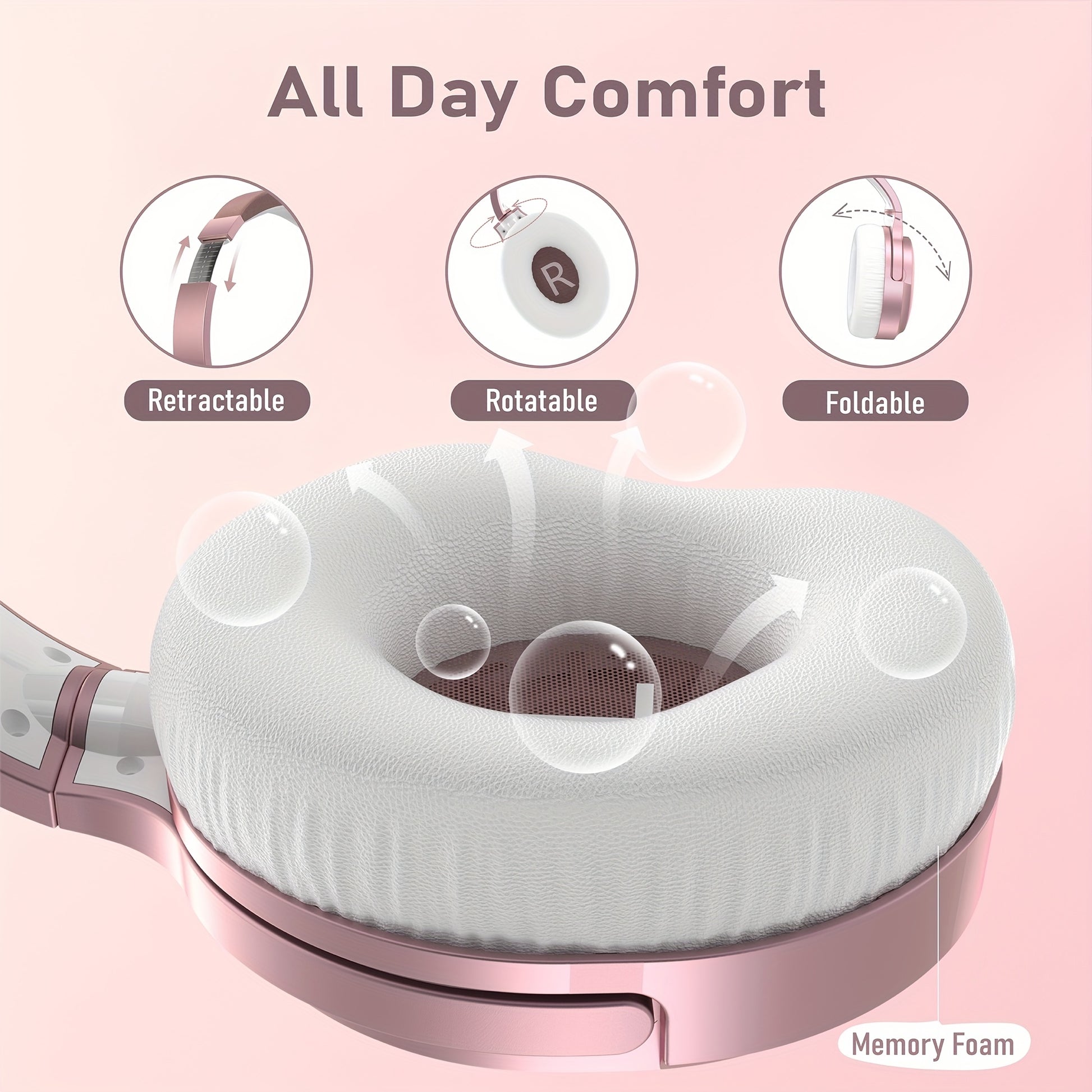 Headphones are made to be comfortable for long periods of use, with adjustable headbands and soft memory foam earcups for a perfect fit without any pressure.