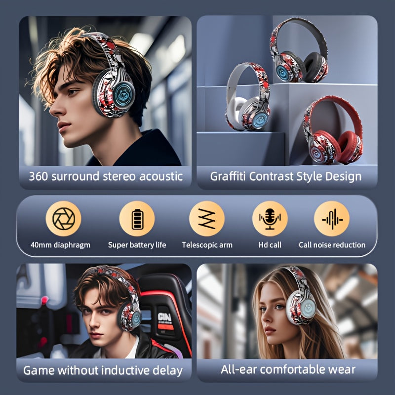 Popular wireless foldable earphones, suitable for tablets/phones/birthdays/Christmas/travel gifts. Head mounted wireless earphones and foldable earplugs